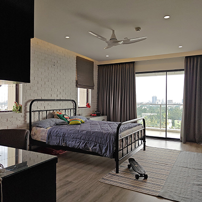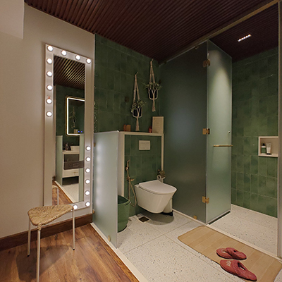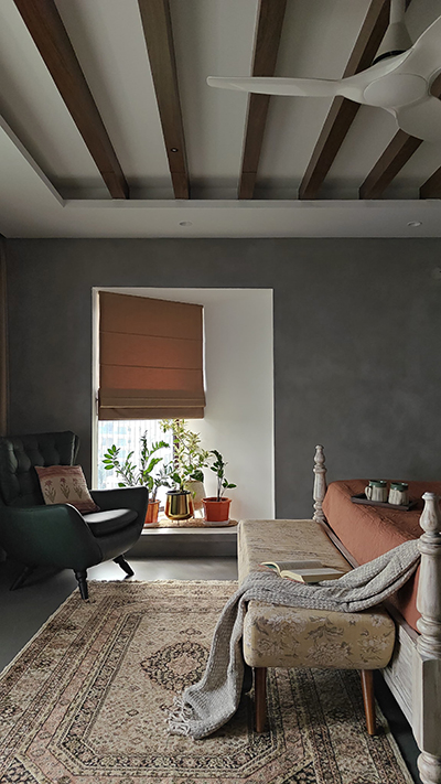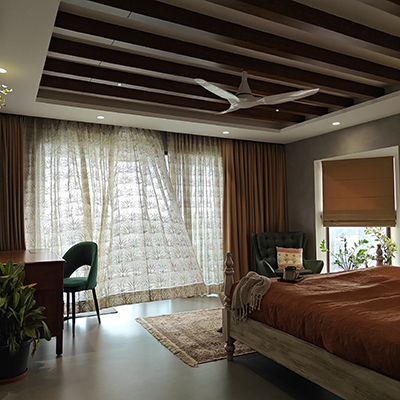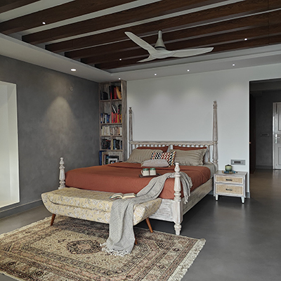 Each bedroom offers a unique story, combining serene tones, mixed materials, and classic-modern touches like post or metal beds, raftered ceilings, and micro concrete or wooden flooring. Bathrooms are clean and tranquil, with natural textures and subtle color.