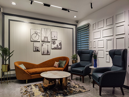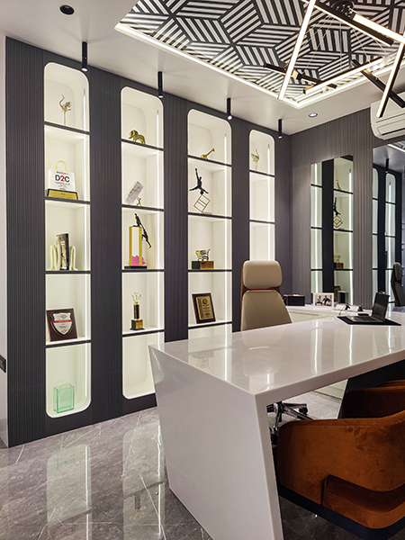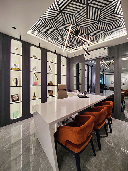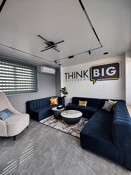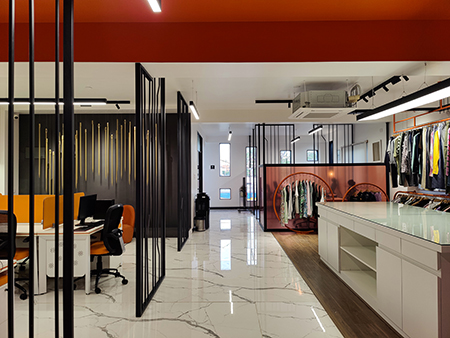 Each of the five floors is zoned for specific functions—Sales & Marketing, Design & Production, Shoot & Recreation, Management & Accounts, and the MD floor with a terrace cafeteria. Designed with intention, Snitch balances functionality, creativity, and comfort, using low, directional lighting and vibrant colors to foster productivity and inspiration.
